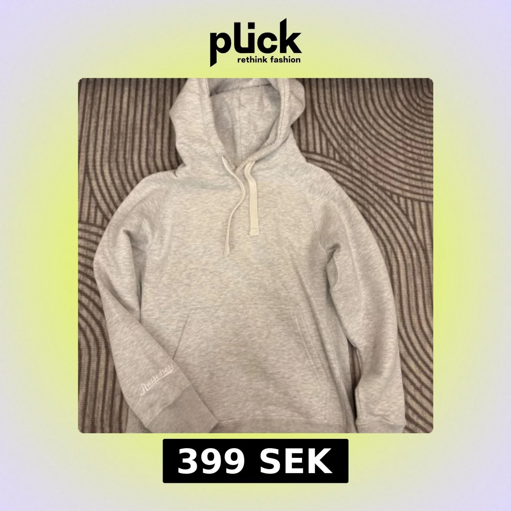 Säljer en stilren grå hoodie från Russedress. Den har en klassisk design med en stor ficka framtill och justerbar huva med snören. Perfekt för en avslappnad stil.