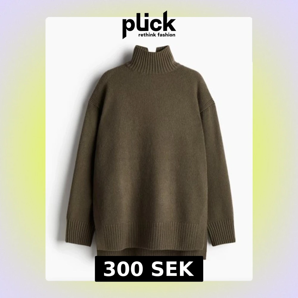 Kontakta mig för mer bilder 💖💖.Snygg olivgrön stickad tröja med hög ribbad krage och långa ärmar.