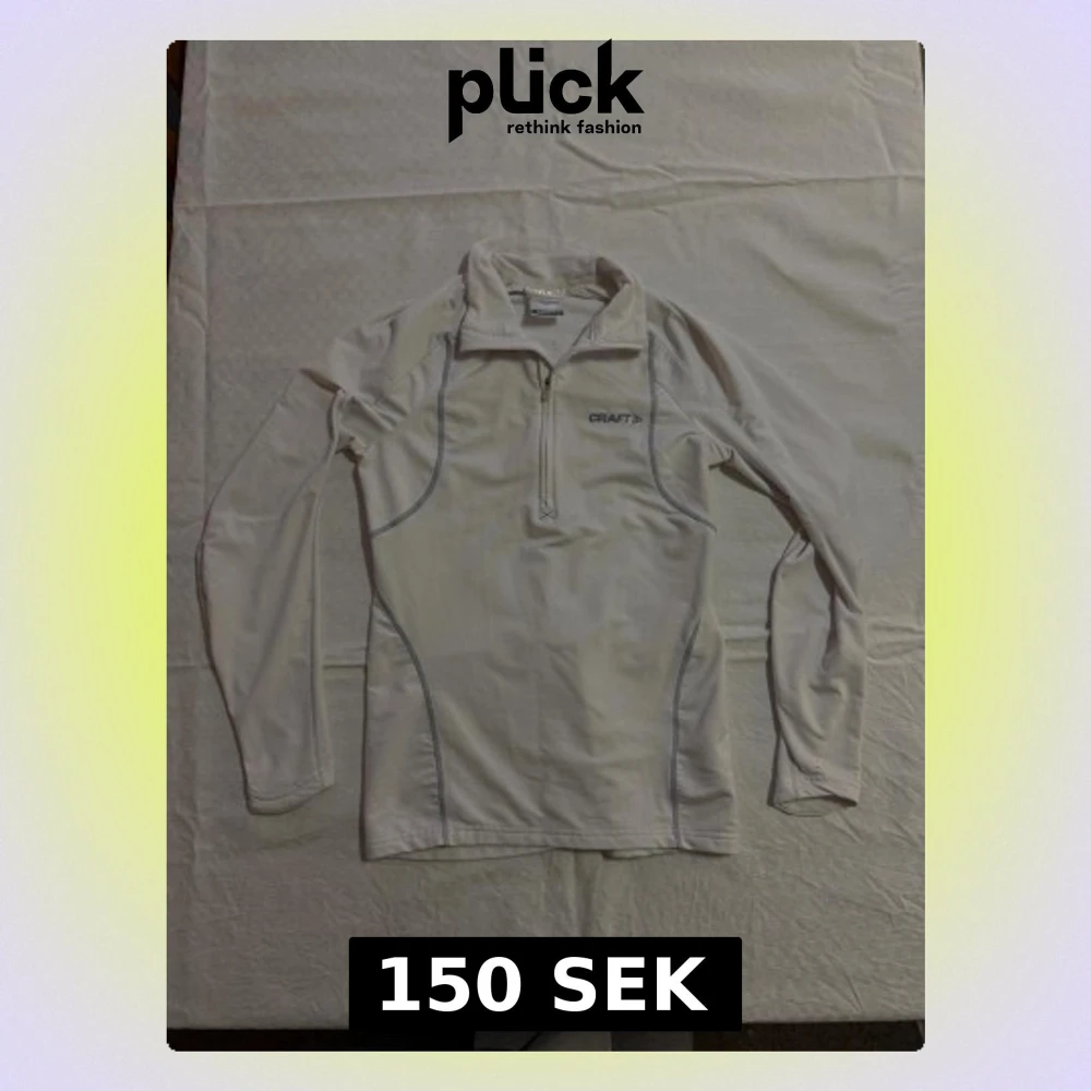 Säljer en vit långärmad träningströja från Craft i storlek S. Tröjan har half zip framtill, broderad logga på bröstet och kontrastsömmar i grått. Perfekt för sport och utomhusaktiviteter, tillverkad i mjukt syntetmaterial som andas.