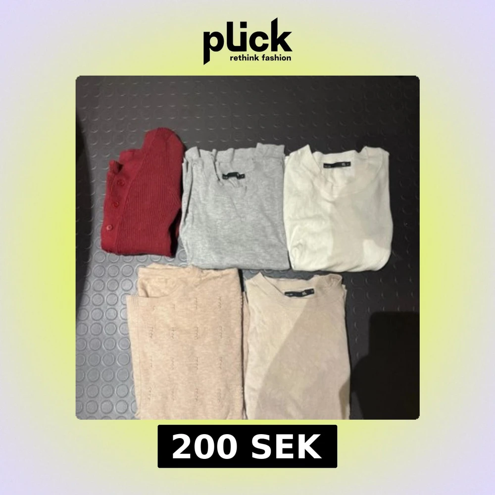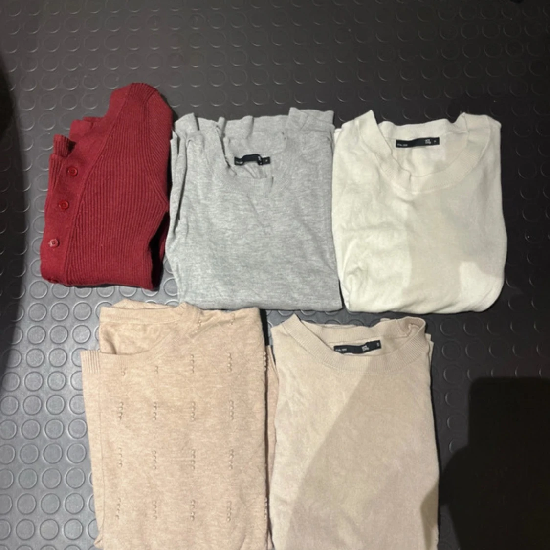 Säljer 5 st tunna stickade tröjor i olika märken, färger och modeller alla i ungefär storlek S i mycket bra skick! Skriv för enskilda bilder. Säljer även fler klädpaket!