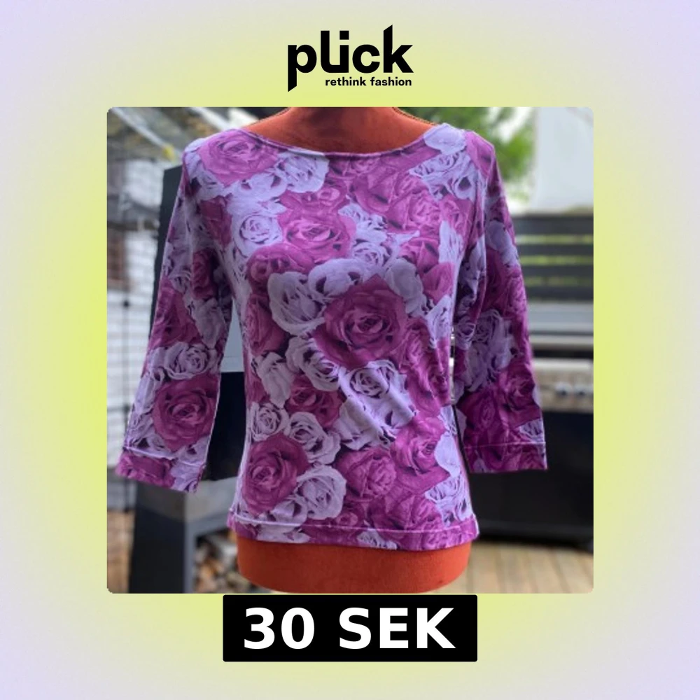 Handsydd topp med rund halsringning och 3/4 ärmar. Den har ett blommigt tryck över hela plagget. Längd: 53 cm bystvidd: 53 cm Bomull/elastan Inga bilder när den sitter på mig! Katter finns i hemmet!