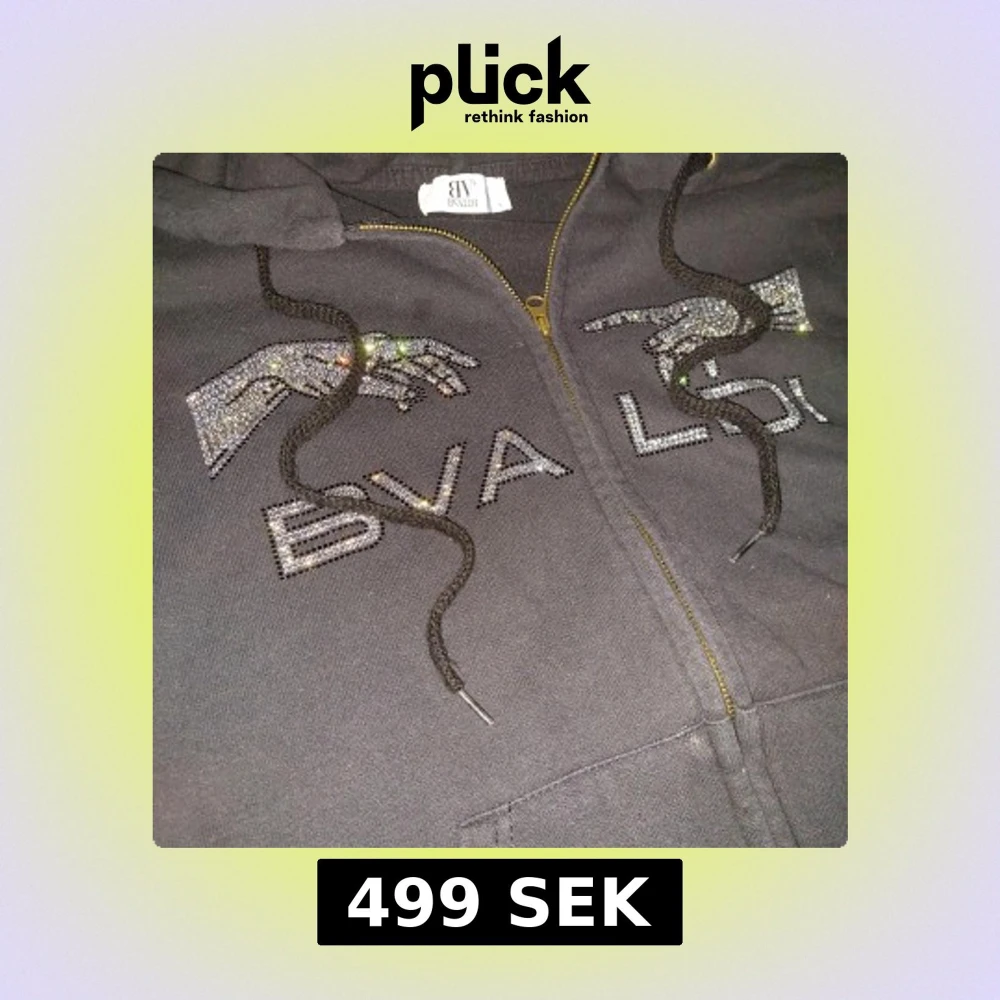 Svart hoodie från BVALDI med dragkedja och huva. Alla diamanter finns på!!!!