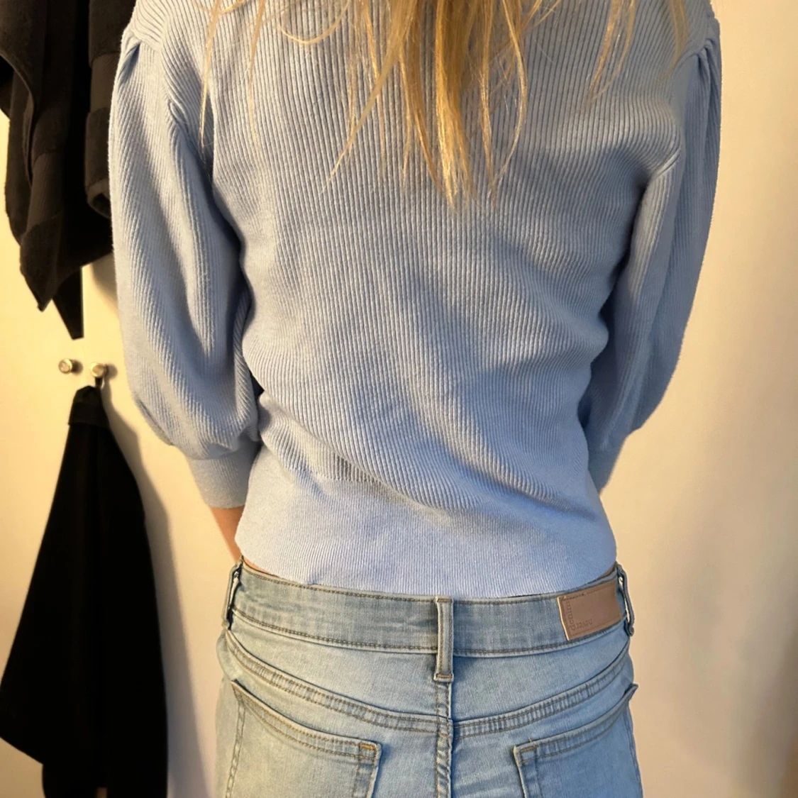 Ljusblå ribbad kofta