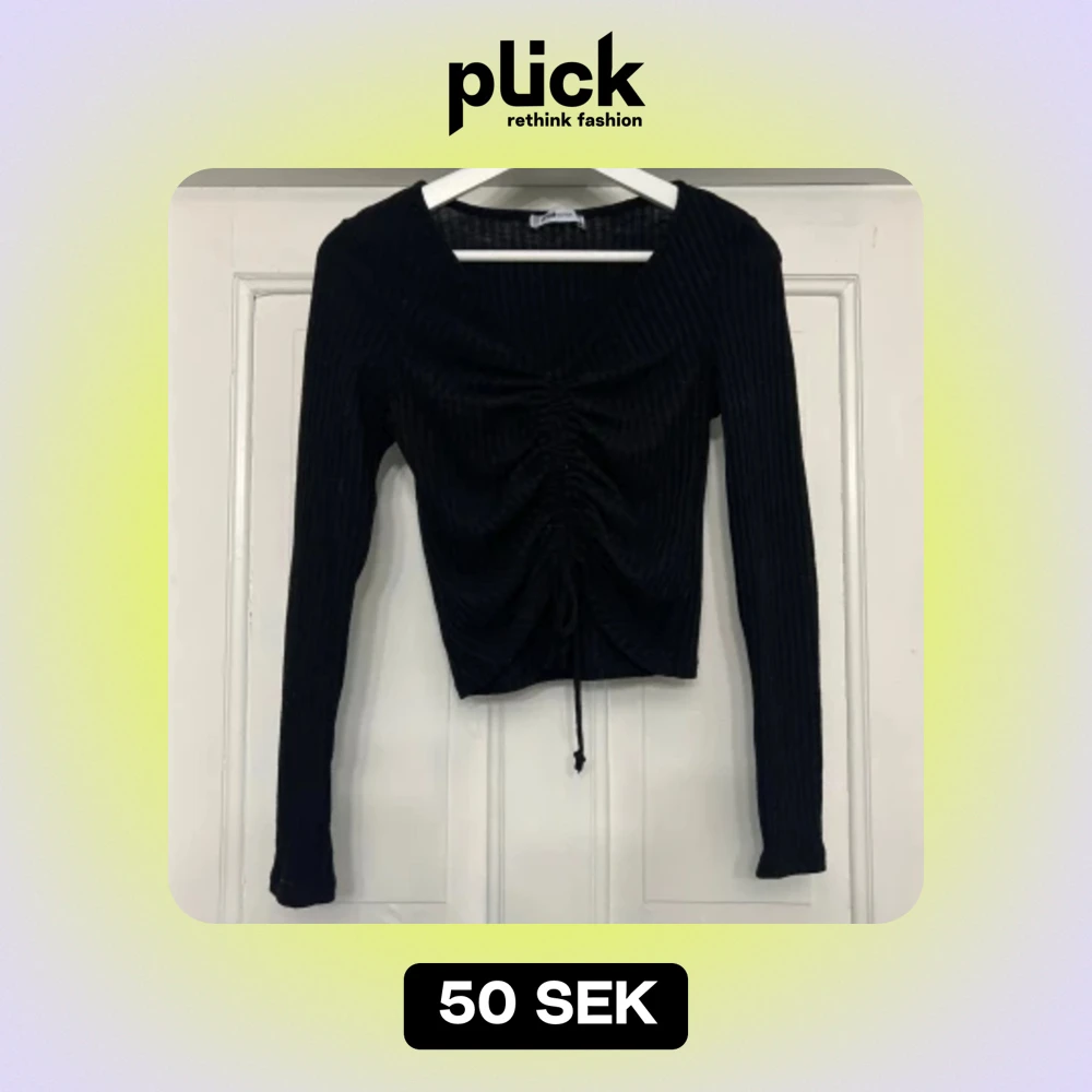 Säljer en svart ribbad tröja med snörning. Använd ett fåtal gånger, fint skick. Storlek S.