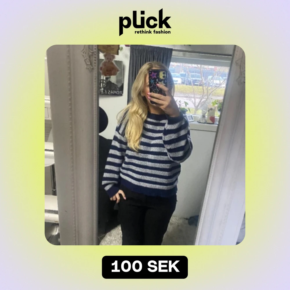 Blå grå randig tröja k stolen S säljer för den inte kommer till användning längre 🩷