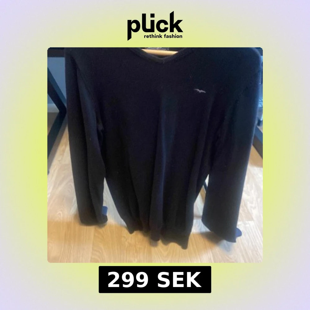 Säljer en stilren svart tröja med v-ringning och långärmade ärmar. Perfekt för en klassisk look.