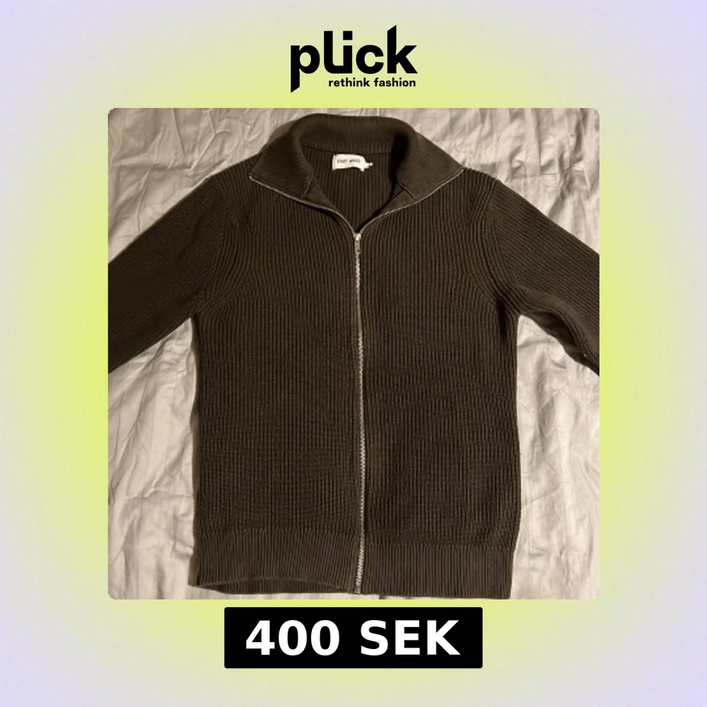 Säljer en snygg brun stickad kofta från East West med dragkedja framtill. Perfekt för kyliga dagar med sin ribbade design och långa ärmar. En stilren och bekväm tröja för alla tillfällen.