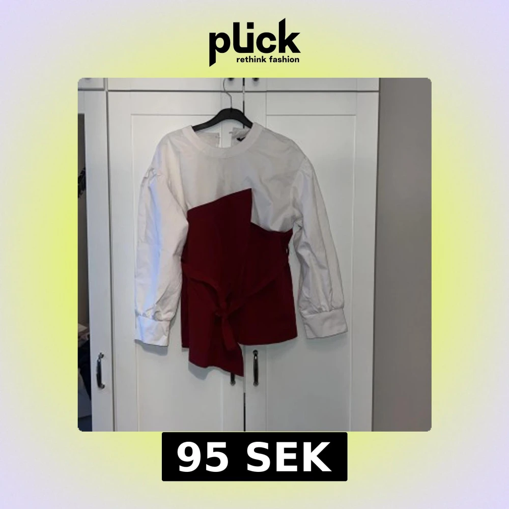 Trendig blus från Shein i vitt och rött med långärmad design. Blusen har en unik knytning framtill som ger en snygg detalj. Perfekt för att ge din outfit en färgklick!
