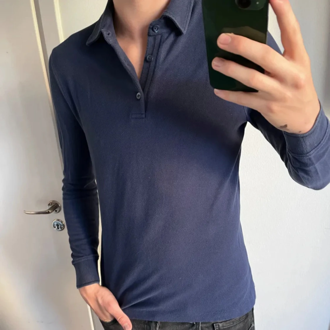 Efter som det är jul ger jag er ett kap för bara 700 kr 🎄🎅Säljer en stilren mörkblå pikétröja från Loro piana. Tröjan har långa ärmar och en klassisk krage med knappar. Perfekt för en avslappna men ändå uppklädd look. Model 186 äkthet kan garanterat