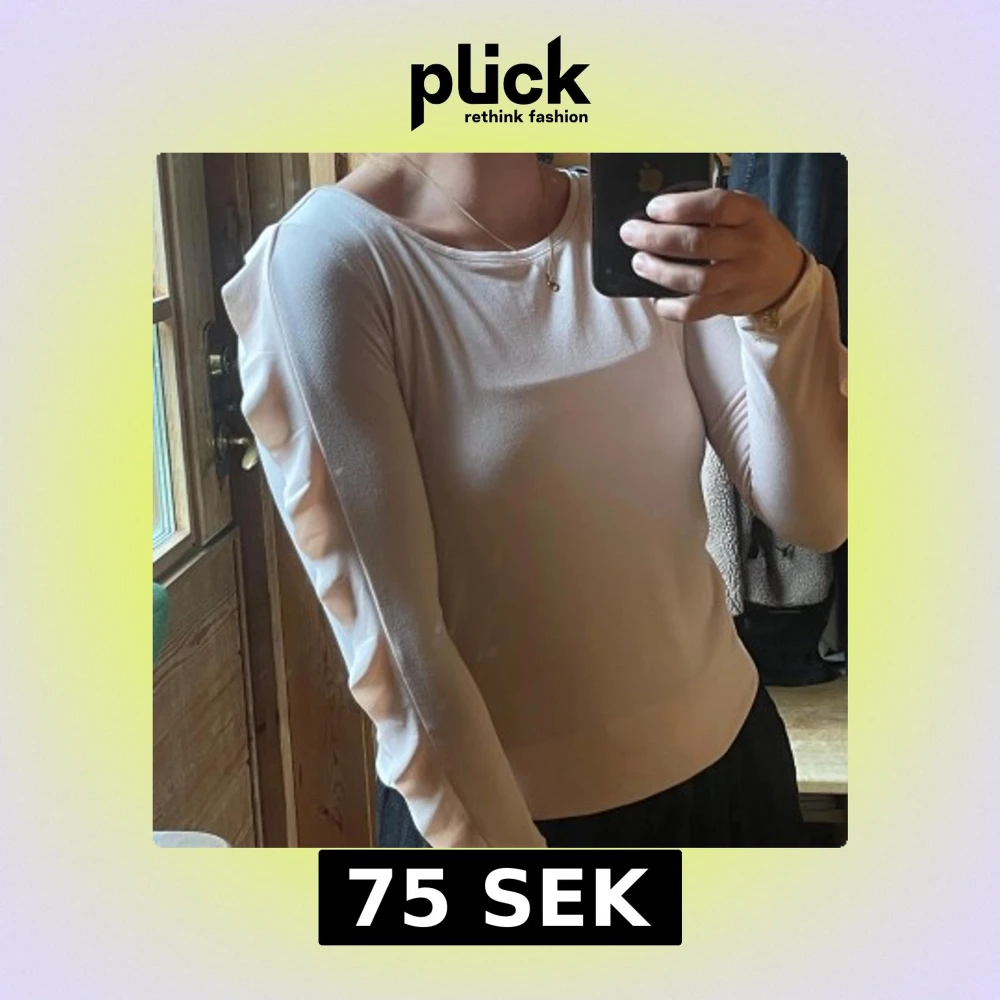 Supersöt ljusrosa långärmad topp med volangdetaljer längs ärmarna.