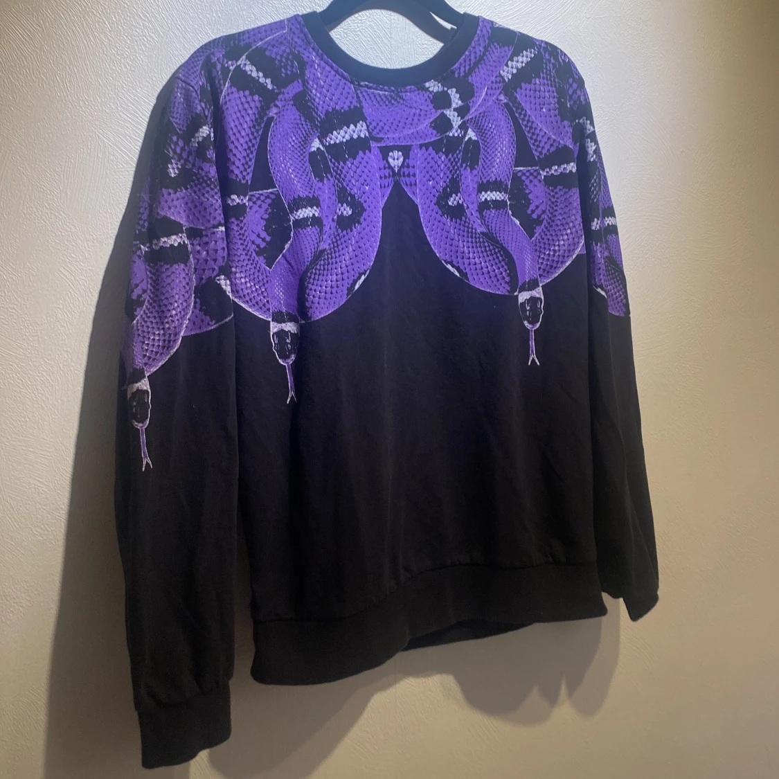 Cool svart tröja från Million&Man i storlek S med ett unikt lila ormtryck över axlar och bröst. Tröjan har rund halsringning och långa ärmar. Perfekt statement piece för dig som vill sticka ut med en edgy vibe.