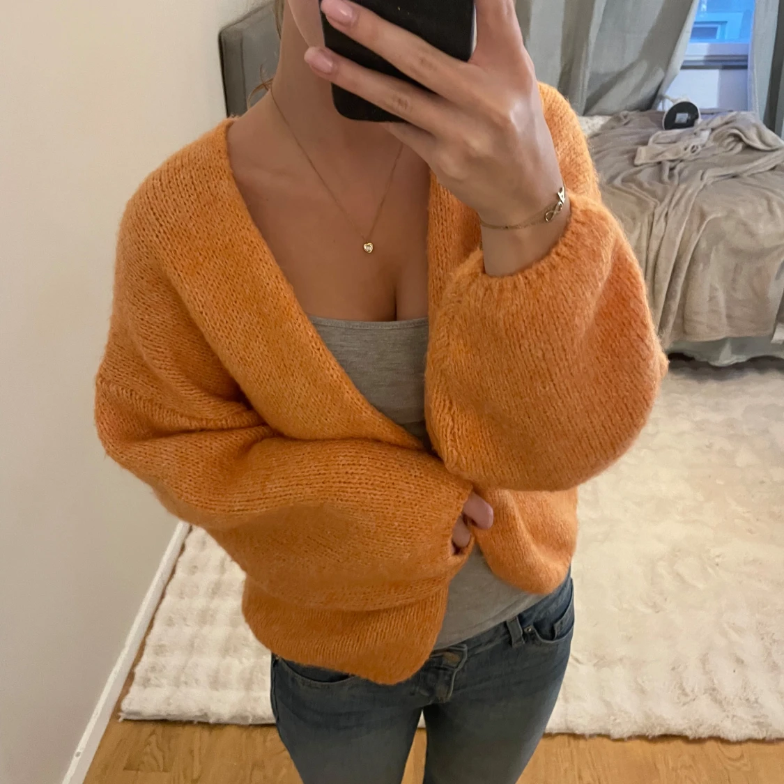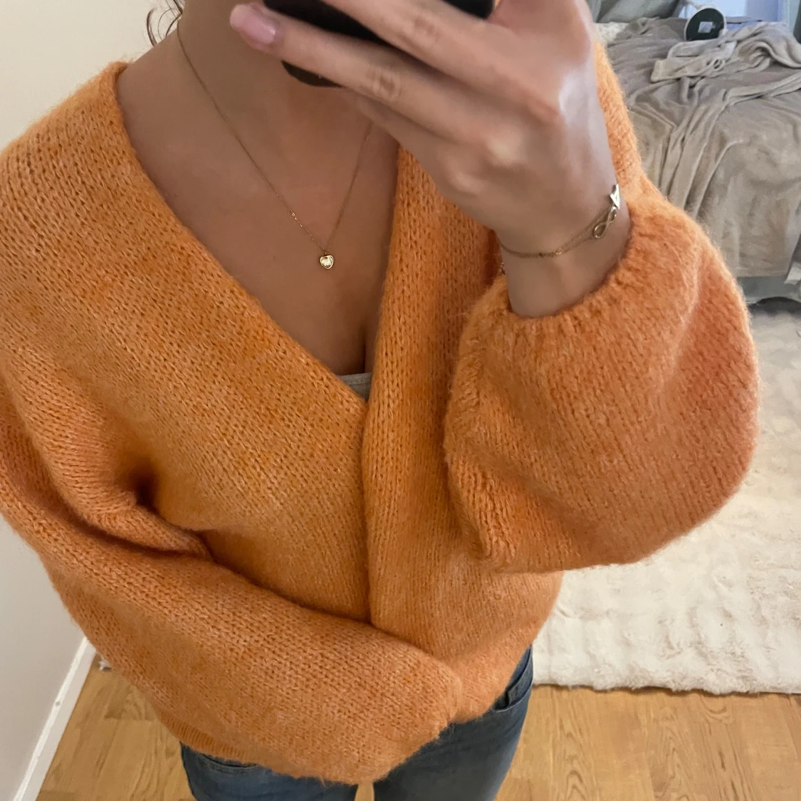 Orange stickad kofta