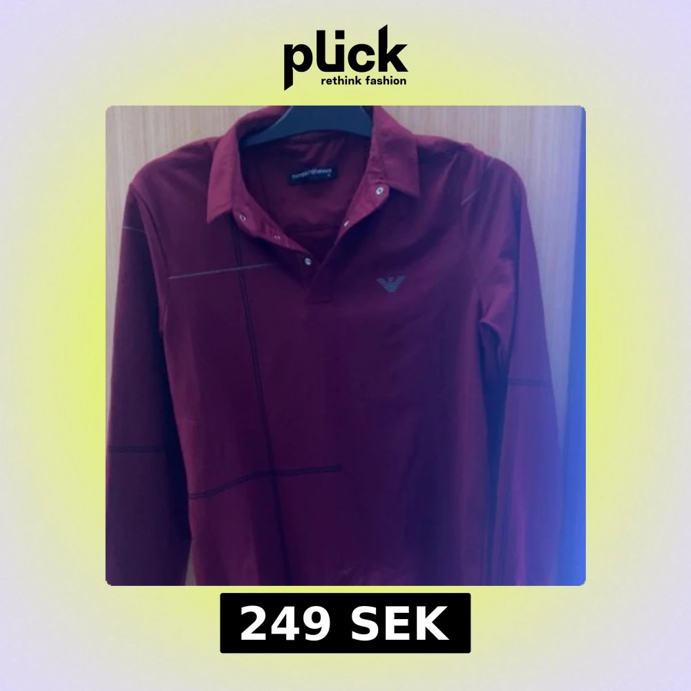Snygg vinröd långärmad pikétröja från Emporio Armani med klassisk krage och knappar framtill. Tröjan har diskreta svarta linjer som mönster och den ikoniska Armani-loggan på bröstet. Perfekt för dig som vill ha en stilren och exklusiv look.