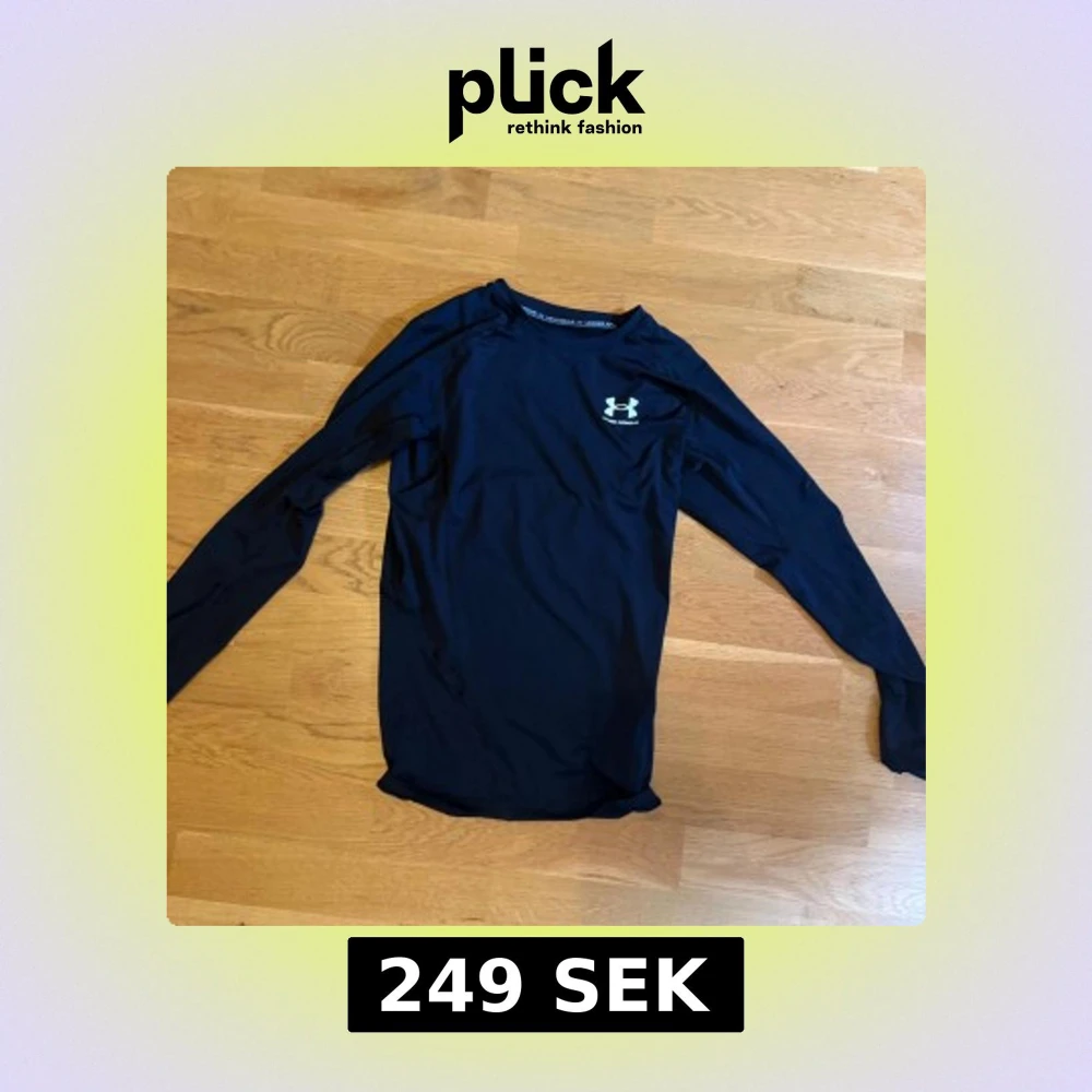 Säljer en svart långärmad träningströja från Under Armour. Tröjan är i ett stretchigt och lätt material som andas, perfekt för intensiva träningspass. Diskret logga på bröstet och en reflexdetalj på ryggen. Snygg och sportig passform.