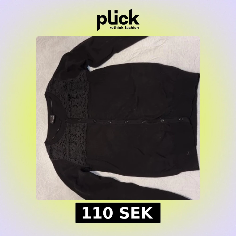 Elegant svart kofta med spetsdetaljer över axlarna och knäppning framtill. Perfekt för en stilren look. Mkt fint skick