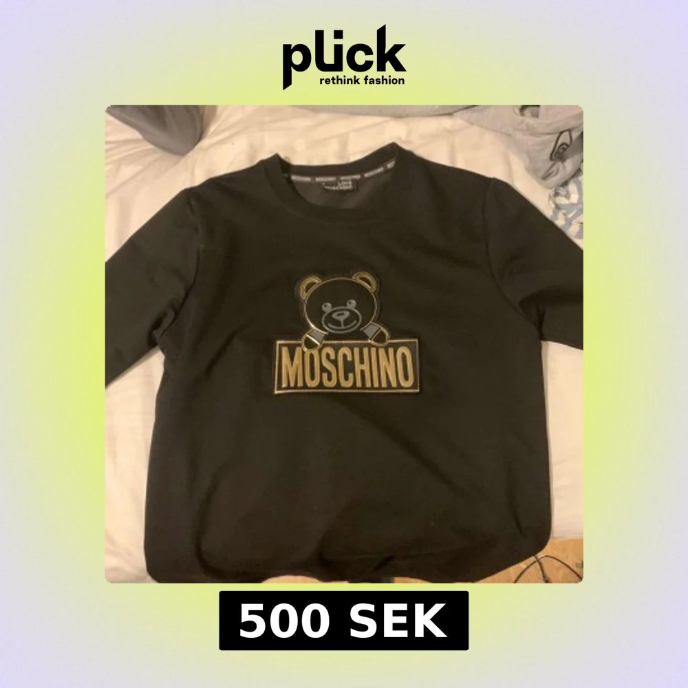 Svart sweatshirt från Love Moschino med ikoniskt björntryck och guldig MOSCHINO-logga på bröstet. Klassisk rund halsringning och långa ärmar. Perfekt för dig som vill sticka ut med en snygg designertröja.