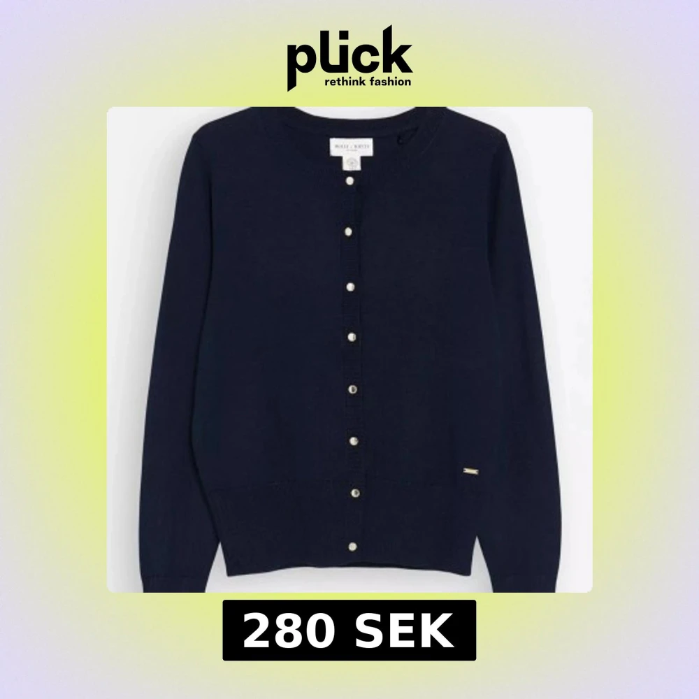 Klassisk mörkblå kofta från Holly & Whyte by Lindex i storlek S. Koftan har rund halsringning, långa ärmar och silverfärgade knappar framtill. Perfekt att slänga över en t-shirt eller klänning för en stilren look.