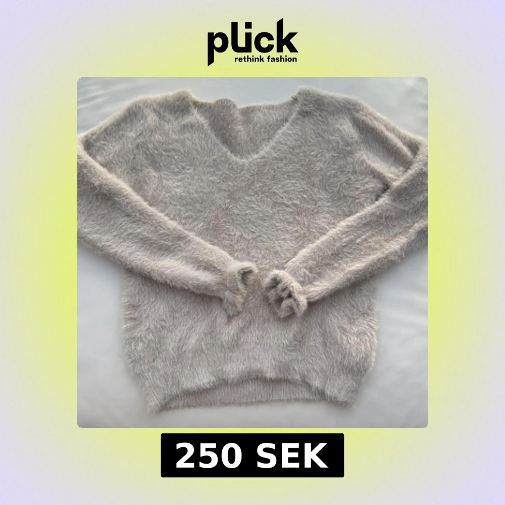 Mysig och fluffig grå tröja med v-ringning. Perfekt för kyliga dagar när du vill känna dig extra bekväm och stilren.