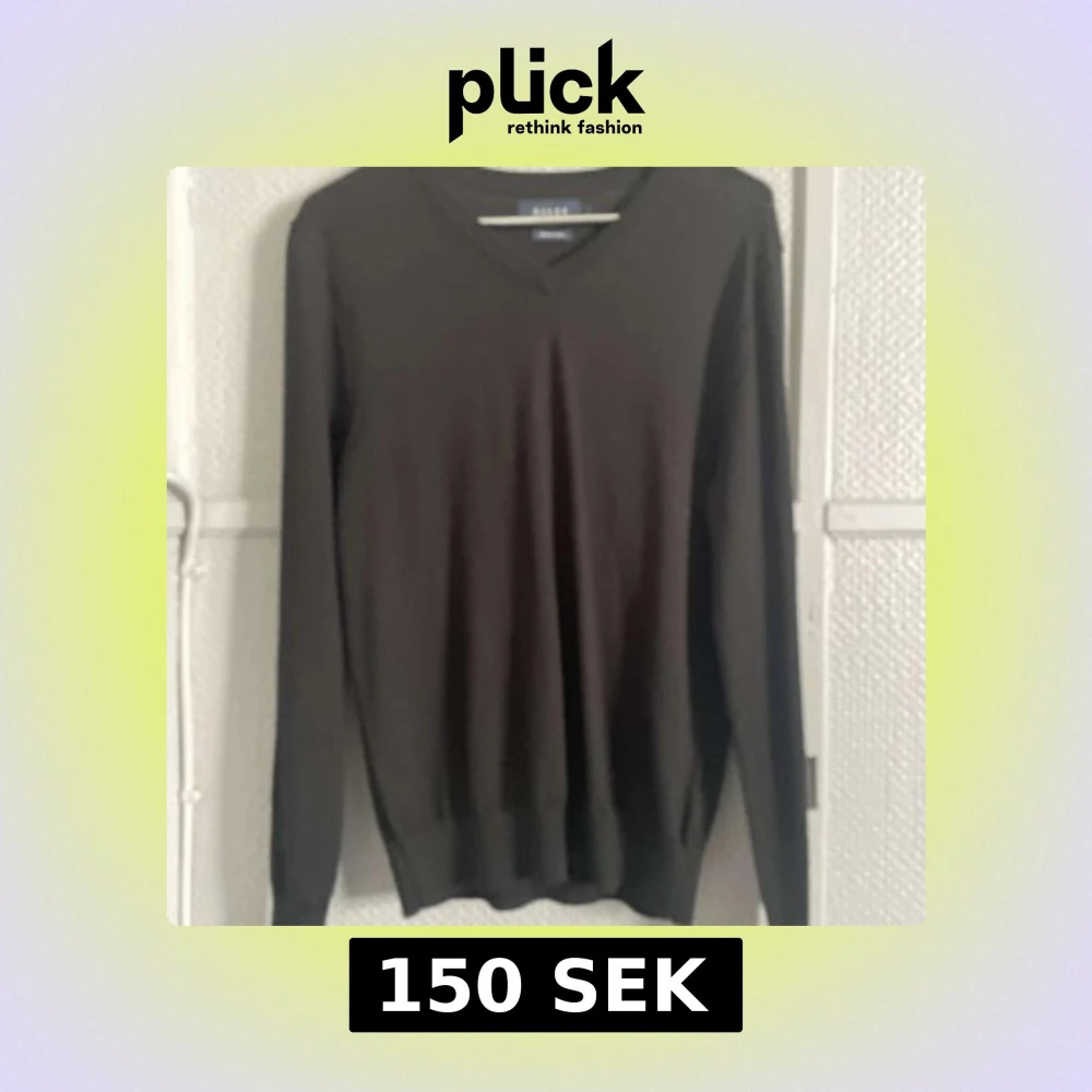 Säljer en stilren svart tröja från Riley i mjuk merinoull. Tröjan har en v-ringad design och långa ärmar, perfekt för kyligare dagar. Passar både till vardags och mer uppklädda tillfällen. Ett måste i garderoben för den som gillar klassisk stil.