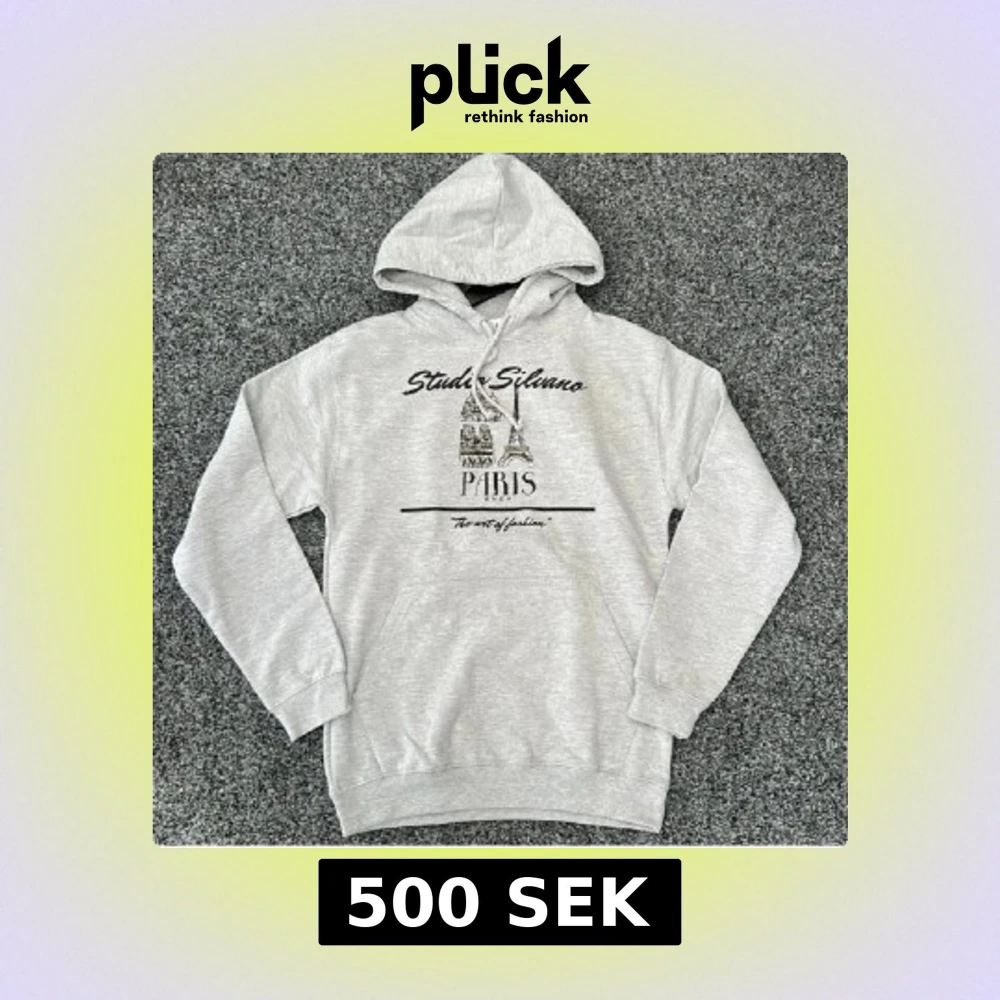 Grå hoodie från Studio Silvano med tryck av Paris och Eiffeltornet på bröstet. Tröjan har huva med snörning, magficka och ribbade muddar. Perfekt för dig som gillar streetstyle och vill ha en chill look. Materialet är mjuk bomull och polyester.