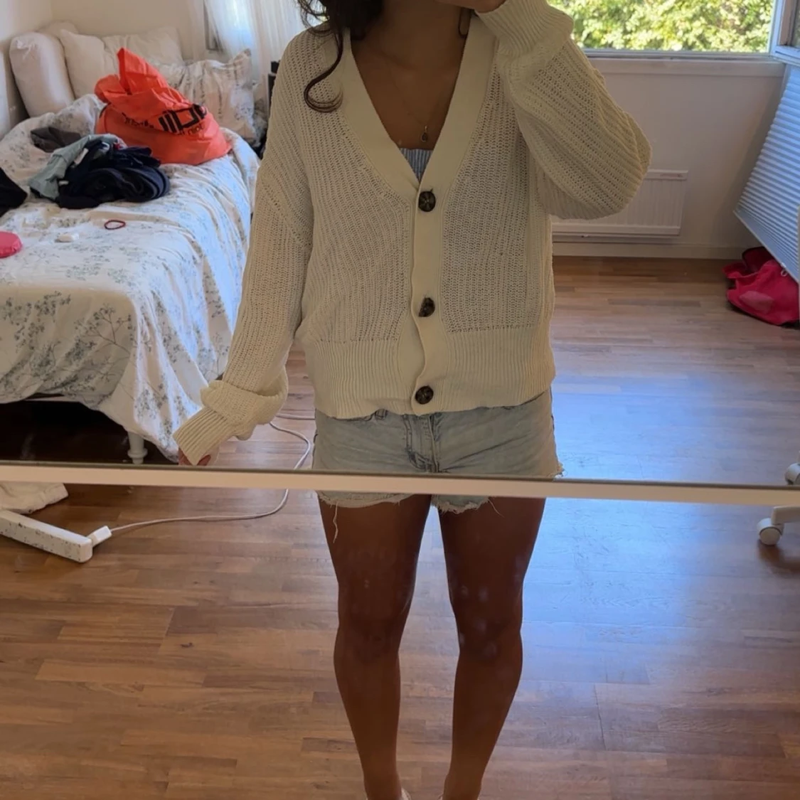 Vit stickad cardigan med knappar