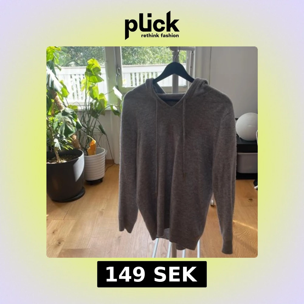 Mysig grå hoodie med huva och snörning i halsen. Tröjan har långärmade ärmar och är tillverkad i ett mjukt stickat material som känns skönt mot huden. Perfekt för chill dagar och enkel att matcha med jeans.