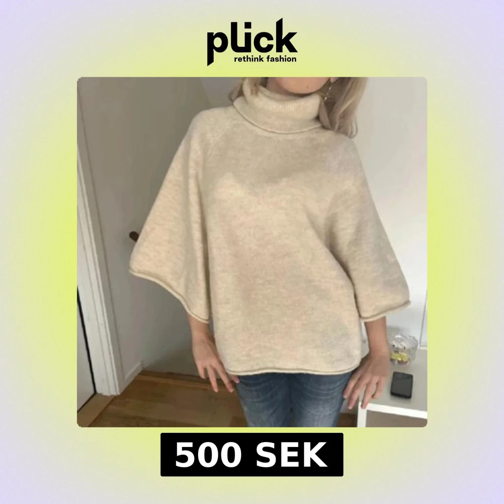 Supermysig beige stickad polotröja med oversized passform och vida trekvartsärmar. Hög, bred polokrage som ger en chill vibe. Perfekt att slänga på sig till jeans eller leggings för en avslappnad look.