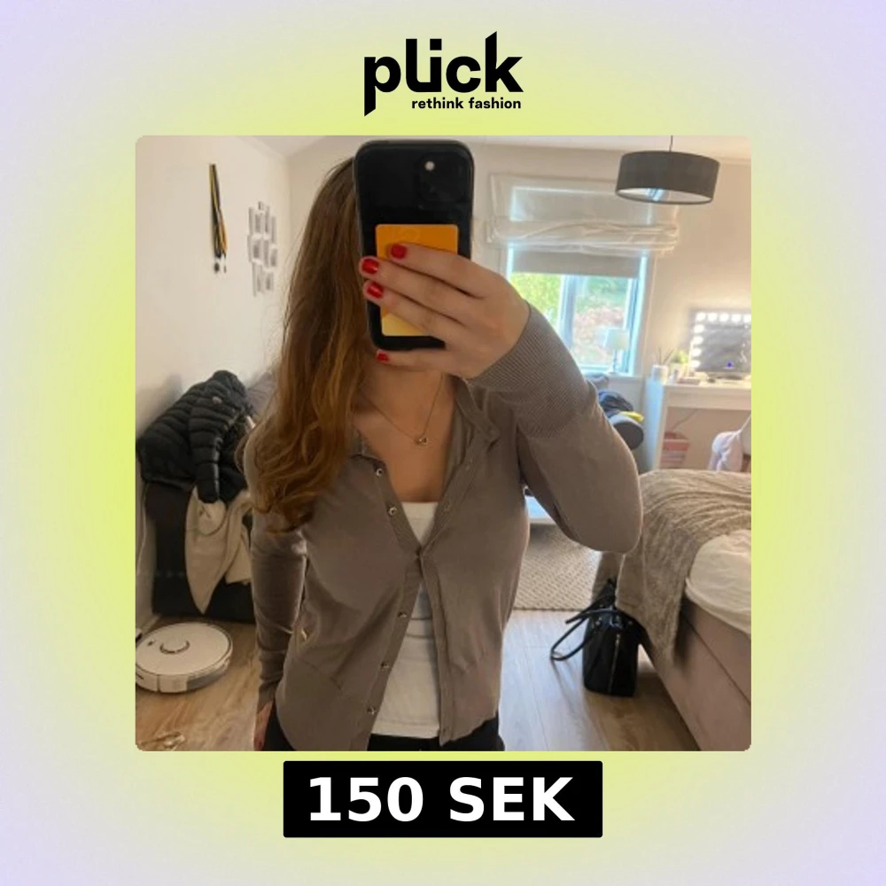 Snygg beige/brun kofta från Holly & Whyte by Lindex i mjuk bomull. Modellen har långa ärmar, ribbade muddar och knappar framtill i guldton.