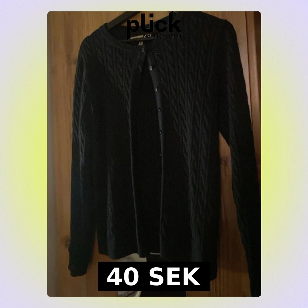 Säljer en svart kofta med rund hals och knäppning framtill. Koftan har långa ärmar och superenkel att matcha med olika outfits!