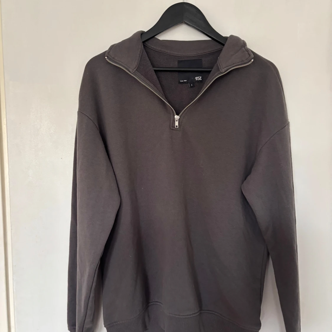 Mörkgrå långärmad tröja från 157 med halv dragkedja och hög krage. Tröjan är i mjuk bomullsmix och har en relaxed passform. Perfekt för lager-på-lager och chill dagar. Enkel och stilren design utan tryck eller mönster.