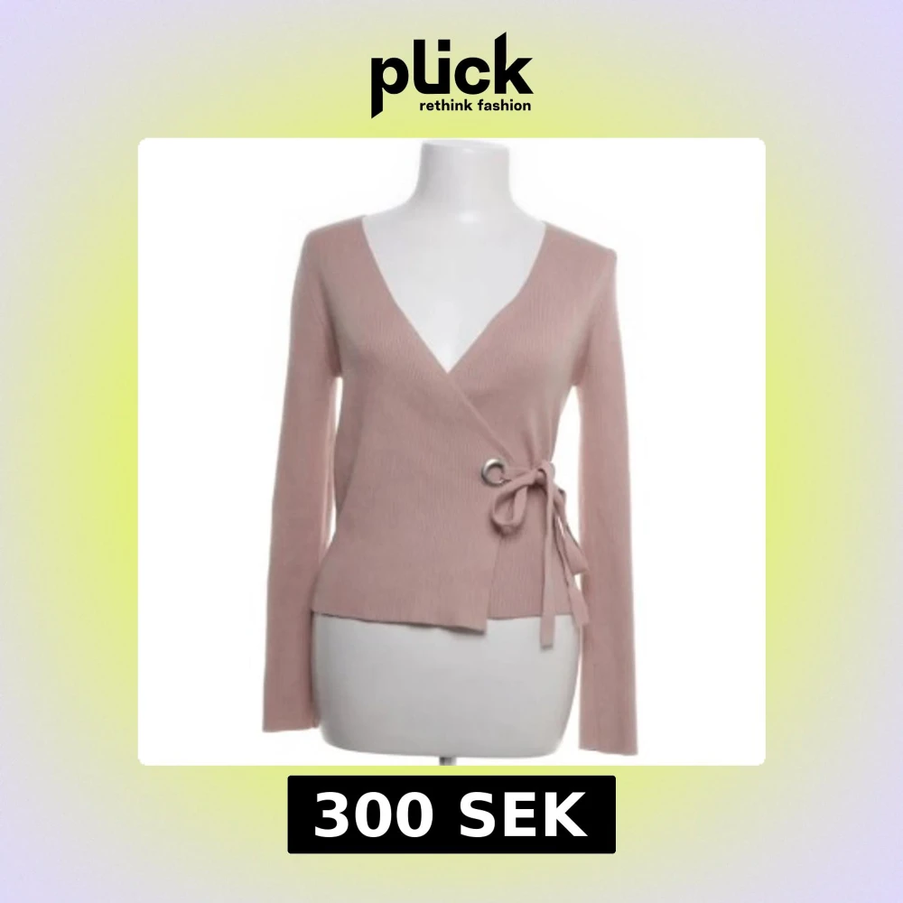 Snygg rosa omlottkofta med ribbad struktur och knytning i sidan. Koftan har en v-ringad design och långa ärmar, perfekt för en stilren look.