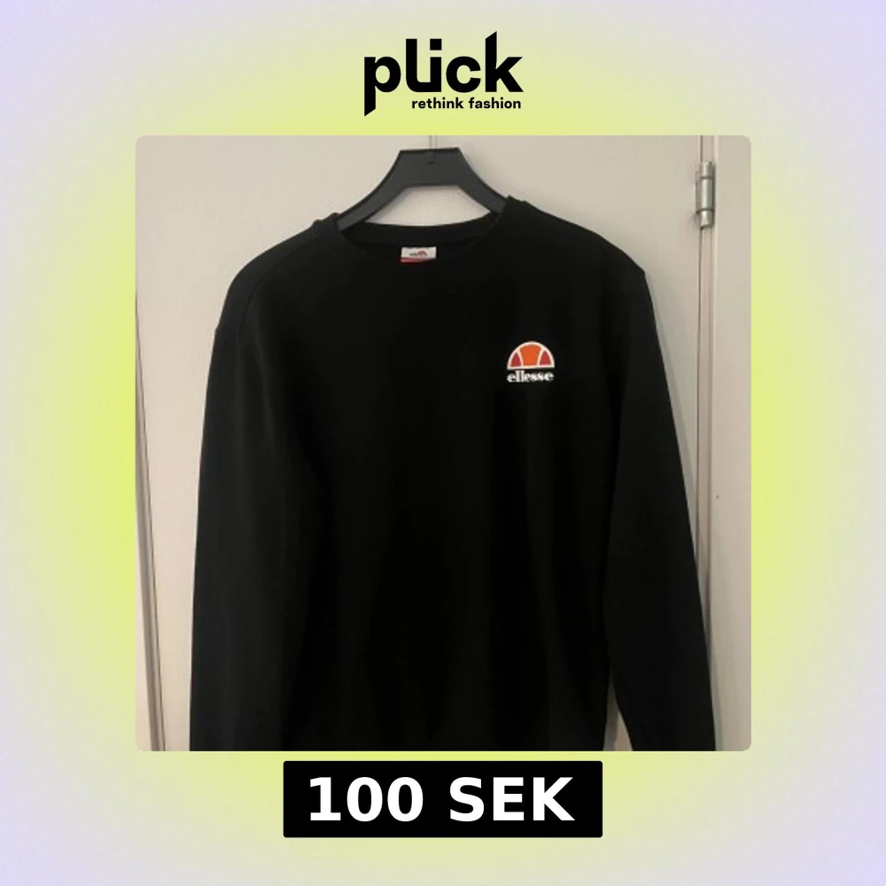 Säljer en stilren svart sweatshirt från Ellesse med deras ikoniska logga på bröstet. Tröjan har långa ärmar och en klassisk rund halsringning. Storlek S