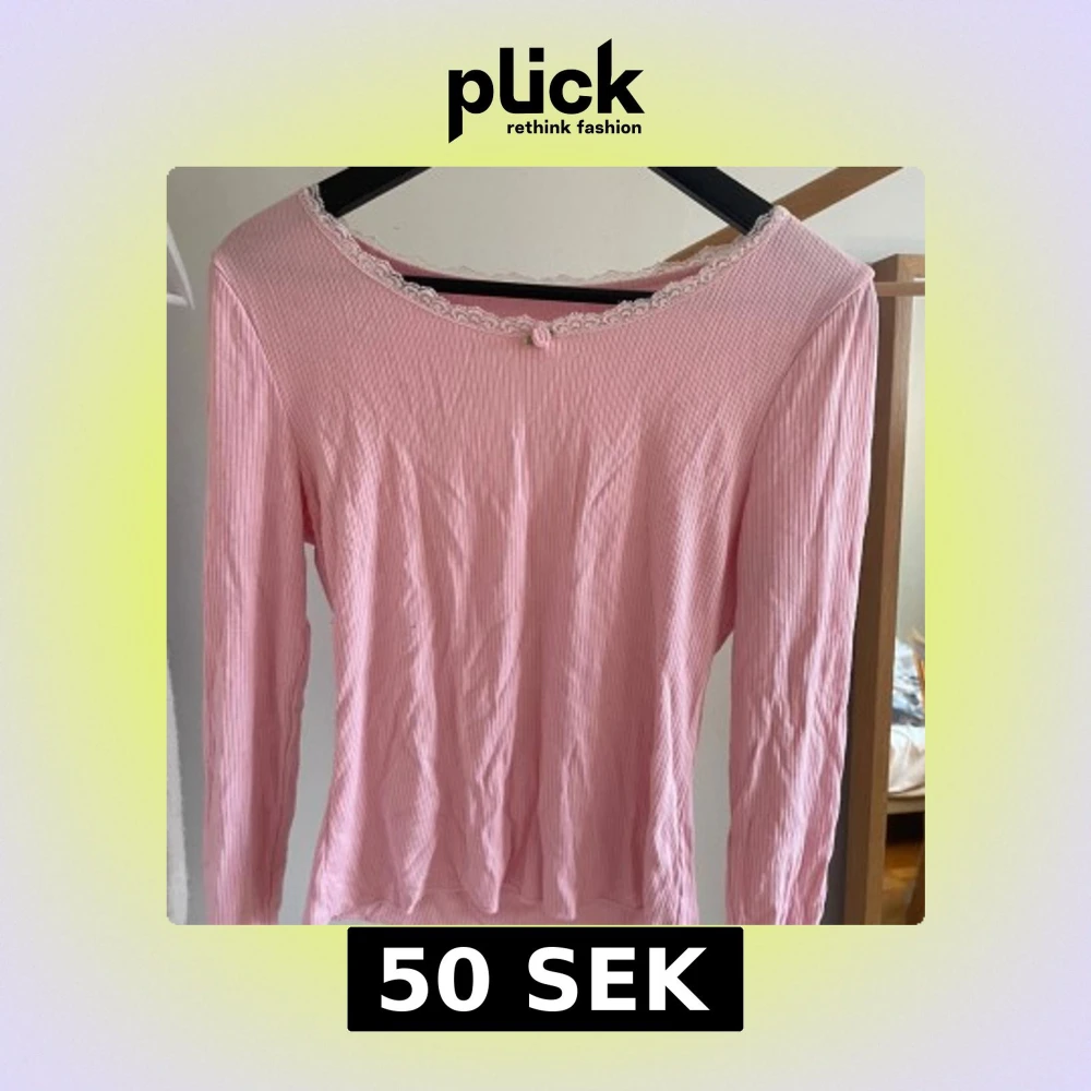 Söt rosa långärmad topp med ribbad struktur och spetsdetaljer vid halsringningen. Perfekt för en feminin och stilren look. Passar bra till både jeans och kjol.