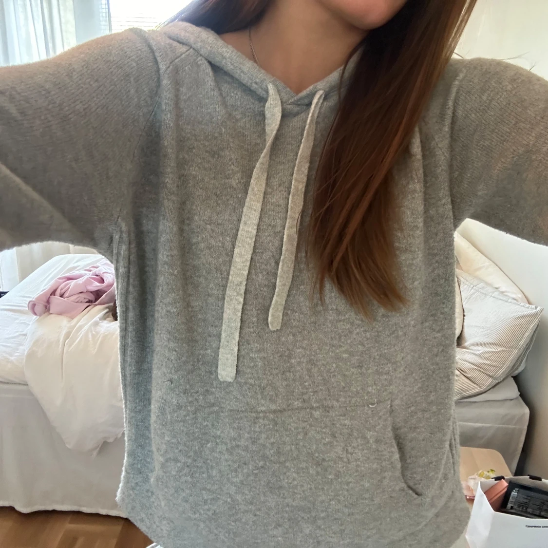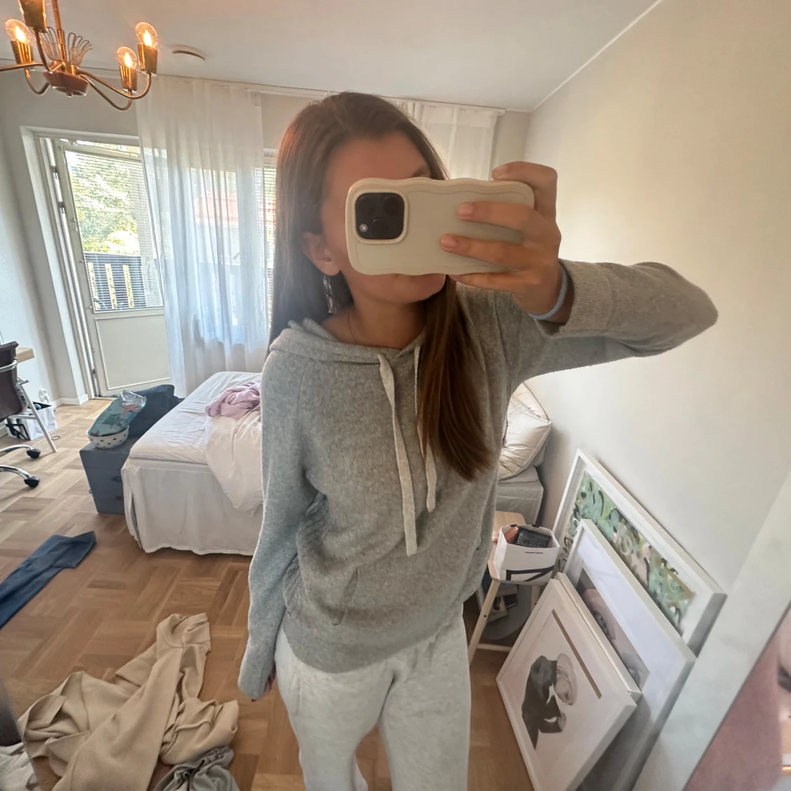 Säljer en supermysig grå hoodie i normal passform. Den är perfekt för höst och vinter med sin mjuka och varma känsla. Perfekt för chill dagar ❣️st M men passar S också💗