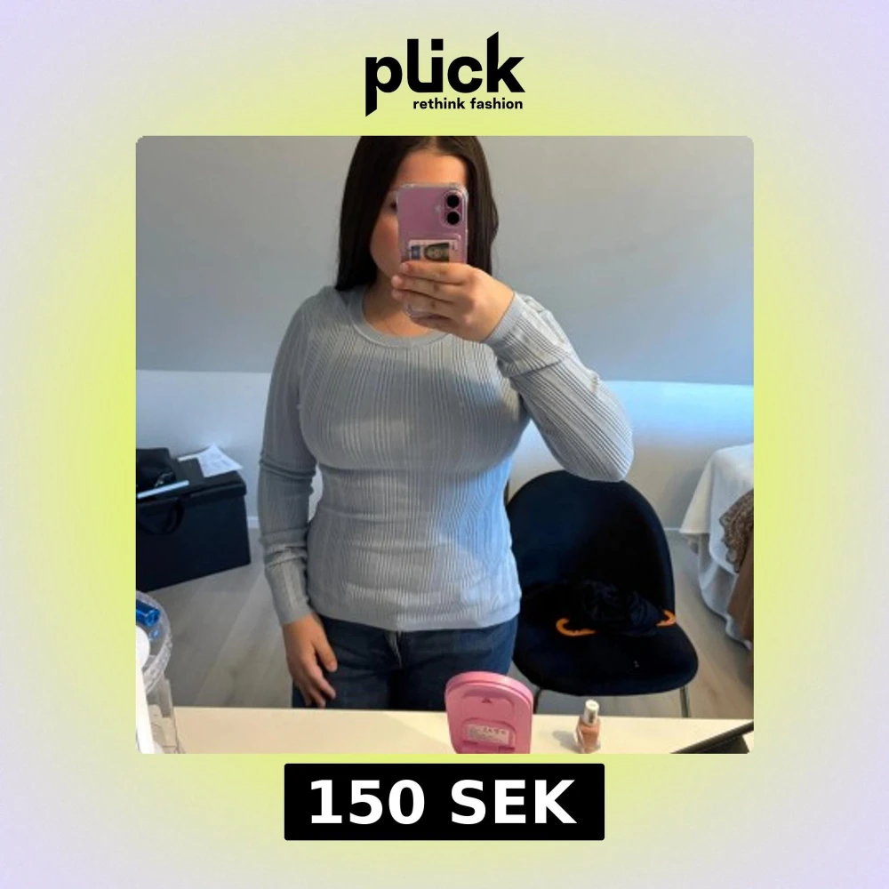 Säljer en ljusblå ribbad tröja från Even&Odd. Tröjan har en rund halsringning. Vet tyvärr inte storleken då de inte står men jag bär mellan S/M så skulle säga att de är en av dom storlekarna