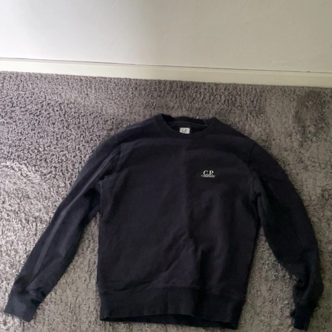 Svart crewneck från C.P. Company med rund halsringning och diskret logga på bröstet. Klassisk modell med långa ärmar. Storlek S men sitter som XS