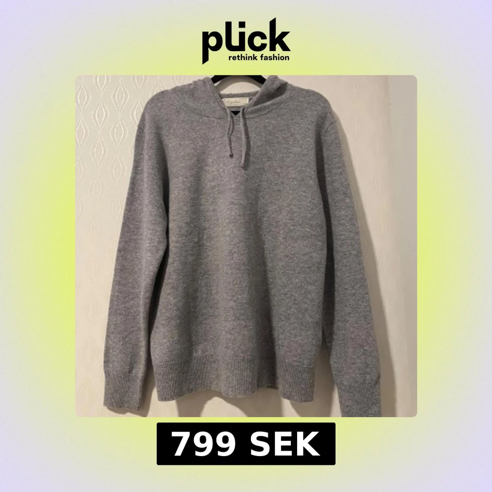 Säljer en supermjuk och stilren grå hoodie i kashmir från Sayless. Perfekt för kyliga dagar med sin bekväma passform och klassiska design. Den har en justerbar huva och ribbade muddar för extra komfort. SISTA PRIS 750kr.