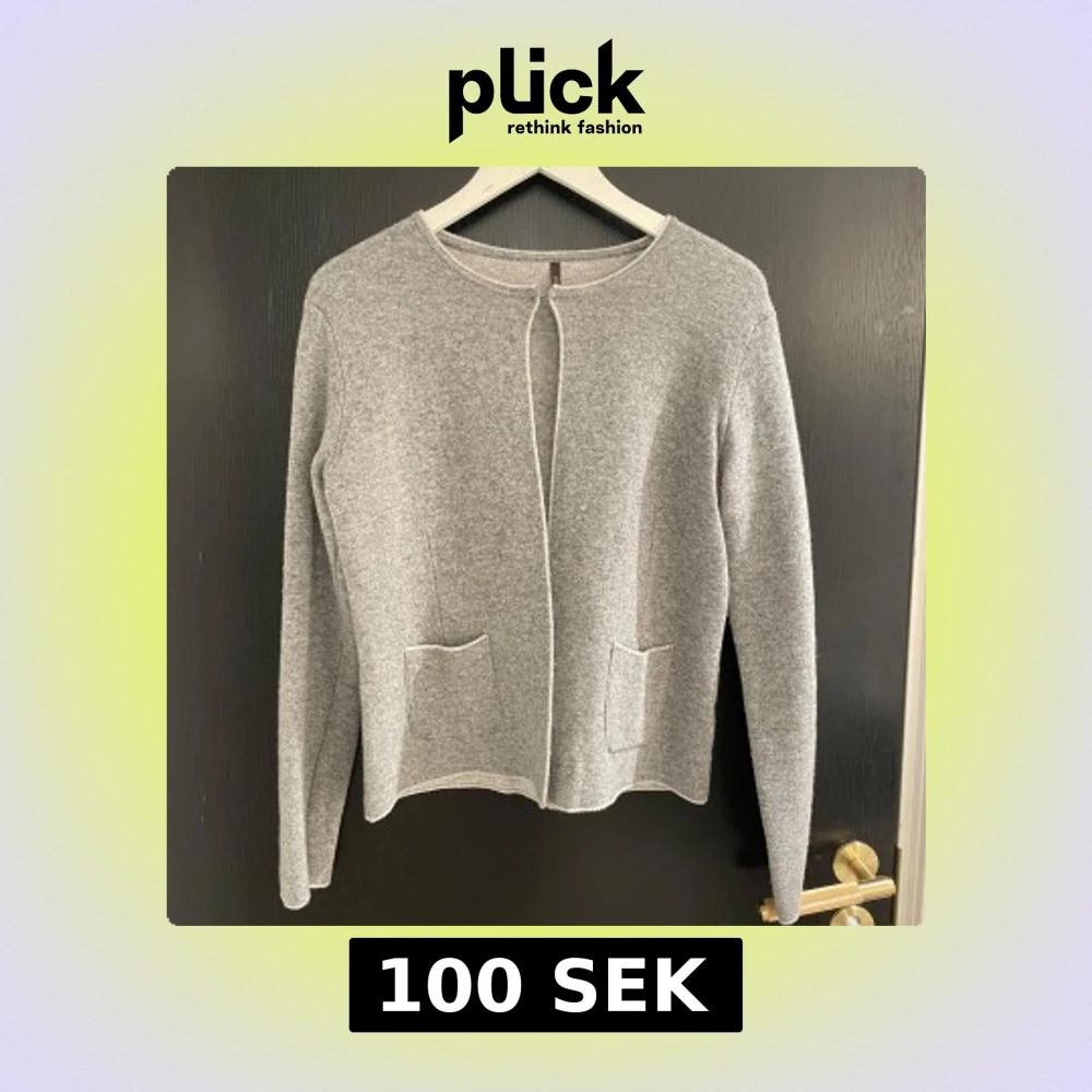 Säljer en stilren grå kofta från Martty. Den har en enkel design med rund hals och två fickor framtill. Perfekt för lager-på-lager under kyligare dagar.