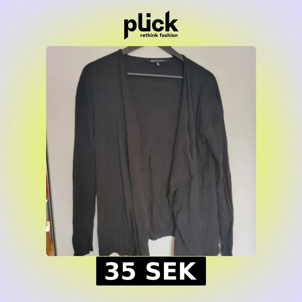 En enkel och stilren svart kofta. Koftan har lång ärm och öppen front. Perfekt att slänga över en topp för en avslappnad look.