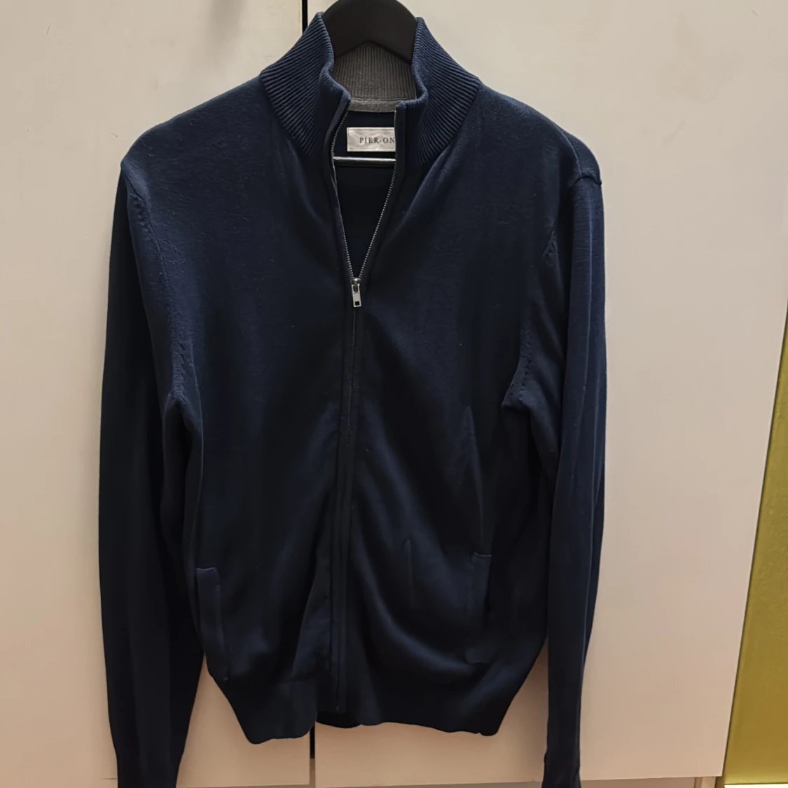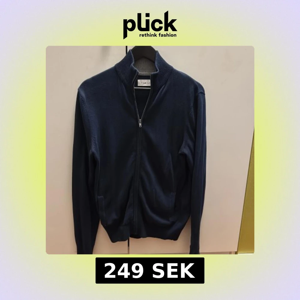 Snygg marinblå kofta från Pikone med dragkedja framtill och ribbad krage. Långärmad modell i mjukt material, perfekt för lager-på-lager. Enkel och stilren design som passar till det mesta.
