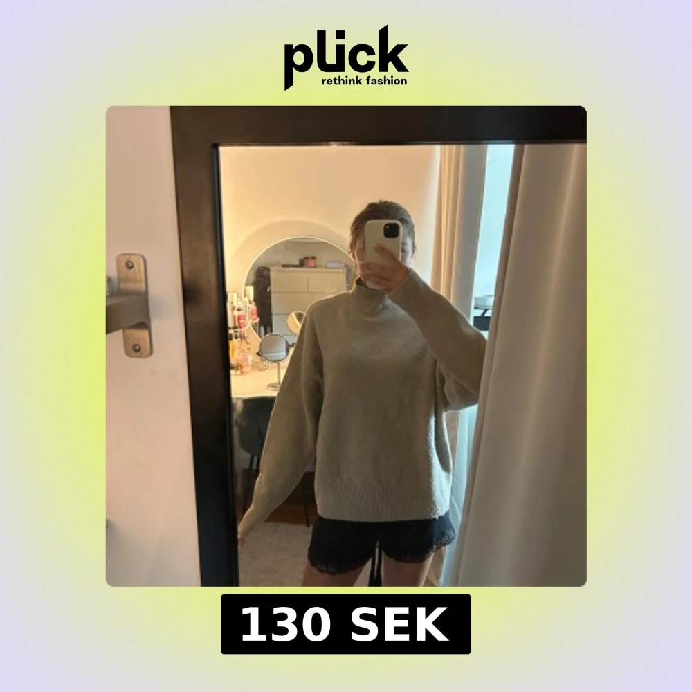 Mysig beige stickad polotröja med avslappnad passform och långa ärmar. Tröjan har en hög krage och ribbade muddar vid ärmslut och nederkant. Perfekt för lager-på-lager under kyliga dagar.