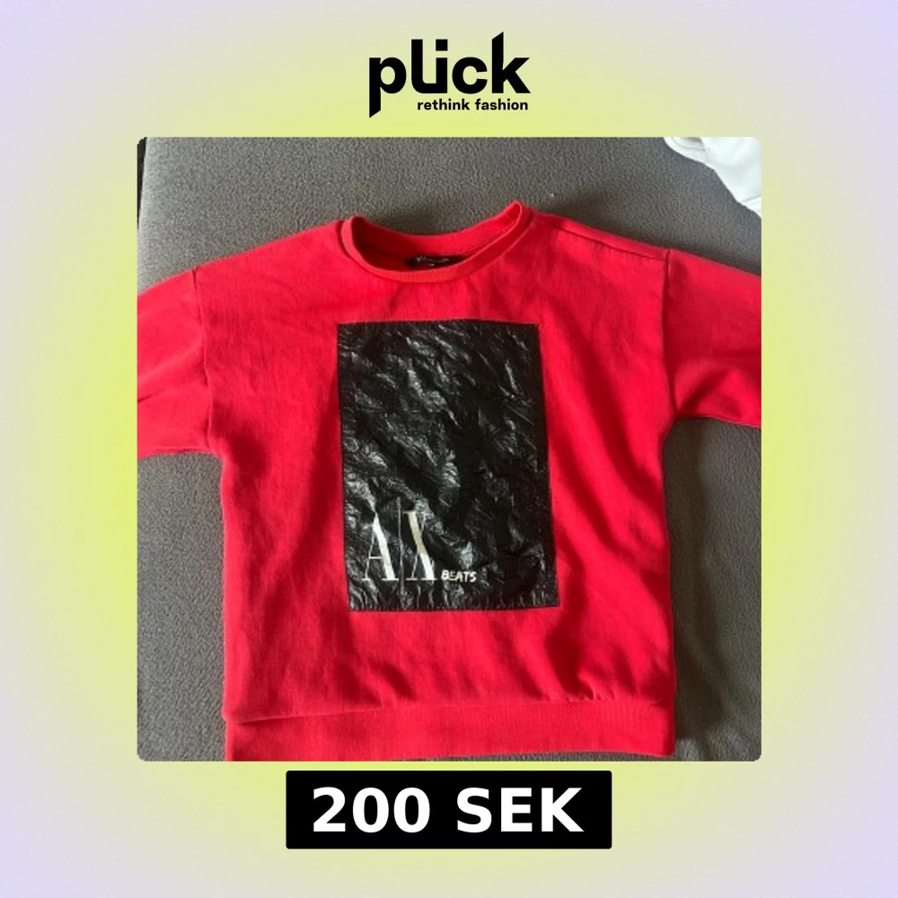 Cool röd sweatshirt från Armani Exchange med stort svart tryck framtill där det står 'A|X BEATS'. Tröjan har rund halsringning och långa ärmar. Perfekt för dig som gillar streetstyle och vill sticka ut med en snygg logga.