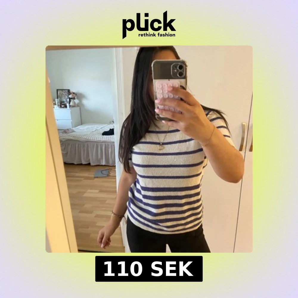 Säljer en vit och lila randig stickad tröja med korta ärmar och rund hals. Tröjan är från ett okänt märke då den är köpt utomlands, jag köpte den dock för 250kr 🌸