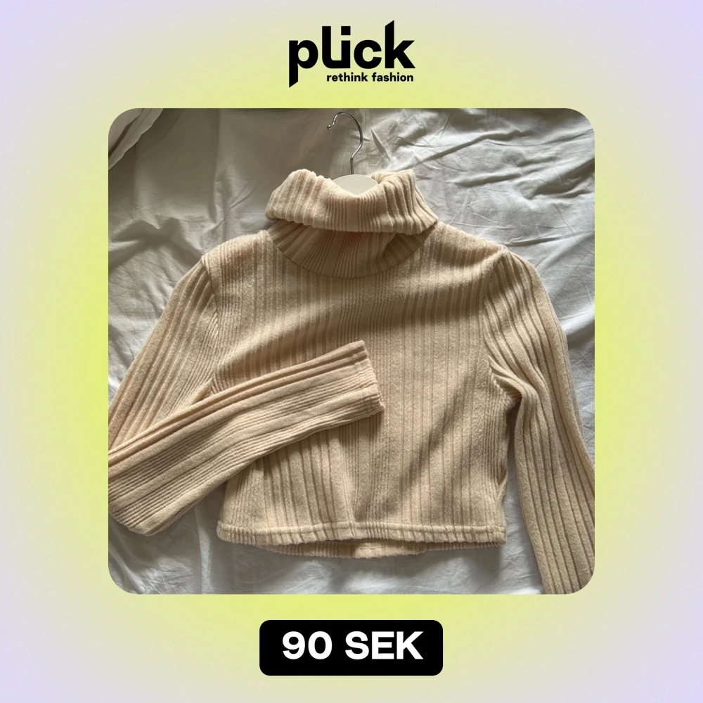 Säljer en superfin beige polotröja i ribbat material. Den är croppad och har långa ärmar, den är dock i storlek L men är ganska så liten så passformen är mer som storlek S/XS