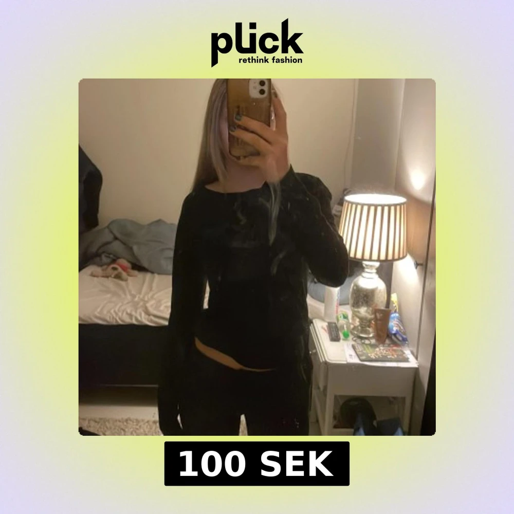 Säljer en stilren svart långärmad tröja. Perfekt för en enkel och elegant look. Tröjan har en normal passform och är tillverkad i ett mjukt material.