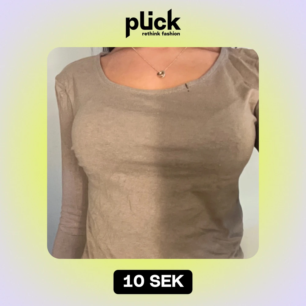 Säljer en beige långärmad topp. Perfekt för en enkel och elegant look. Toppen har en rund halsringning och är figurnära. Har en fläck vid halsen som inte går bort därför billigare pris💕passar S & XS