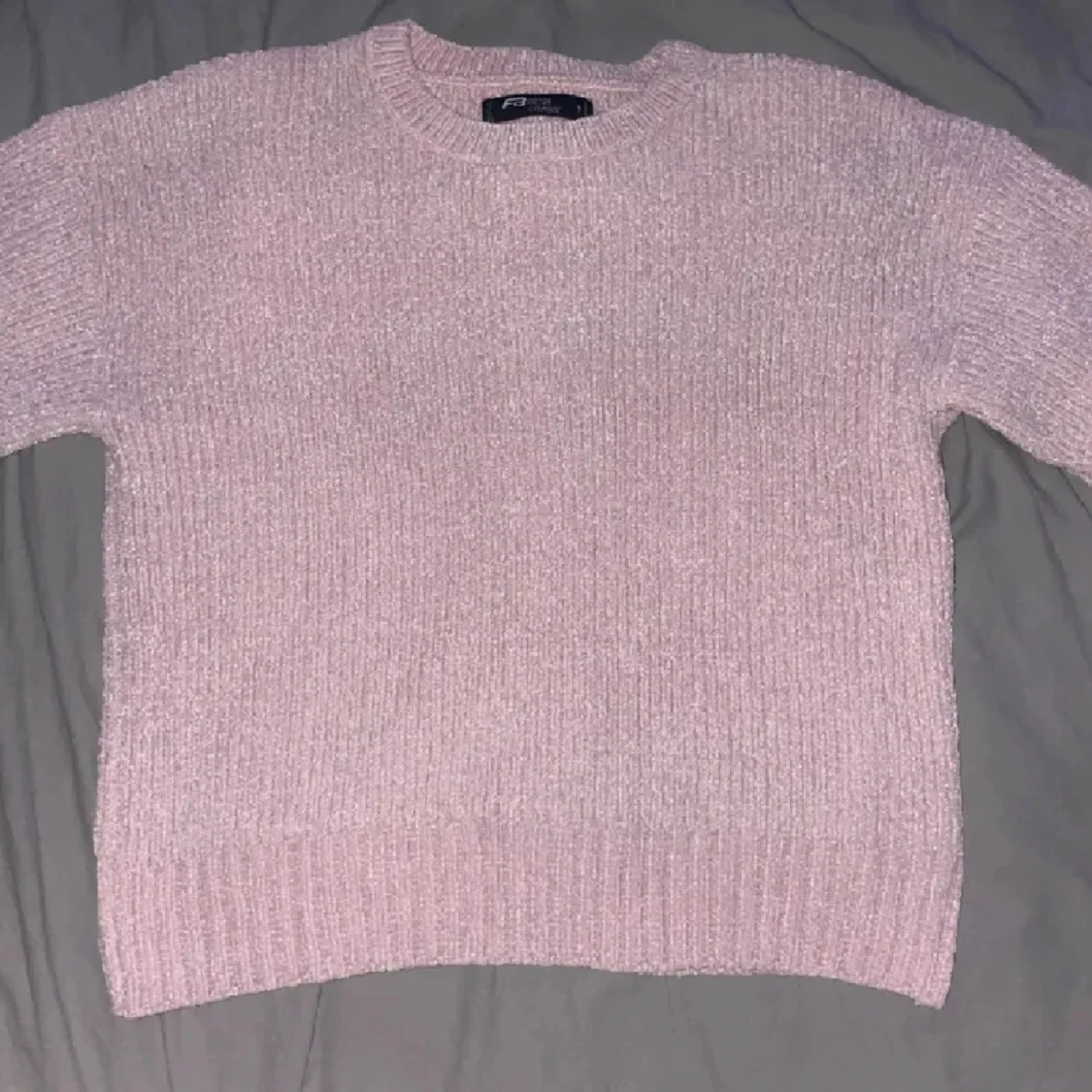 Mysig ljusrosa stickad tröja från new yorker med rund hals och ribbad.