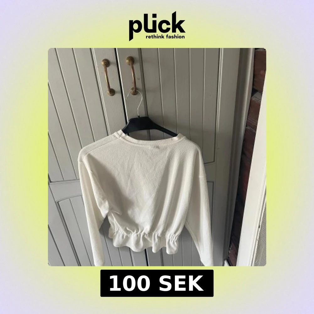 Säljer en vit långärmad tröja med rund hals och snygg snörning i midjan som ger en croppad och avslappnad look. Tröjan har en lätt struktur i tyget och passar perfekt till jeans eller kjol.