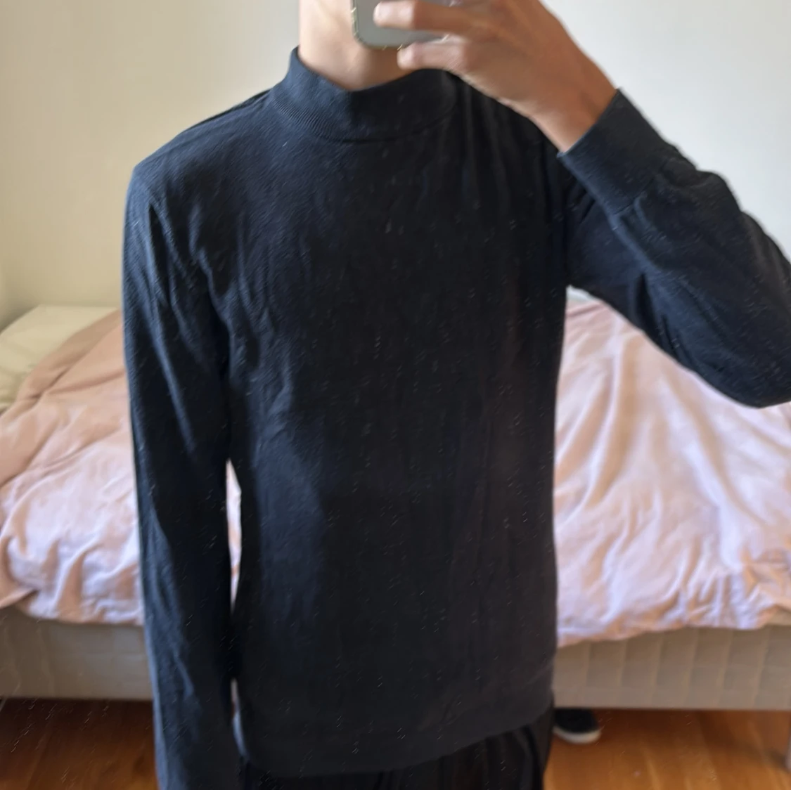 En stilren svart bläckkofta storlek S med lång armar och bra passform endast använd fåtalgånger. Ett litet hål i armen där bak men snaras bra skick 7/10