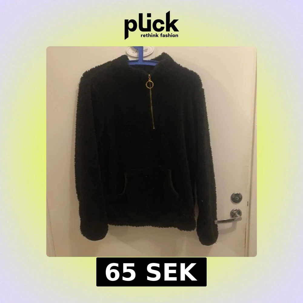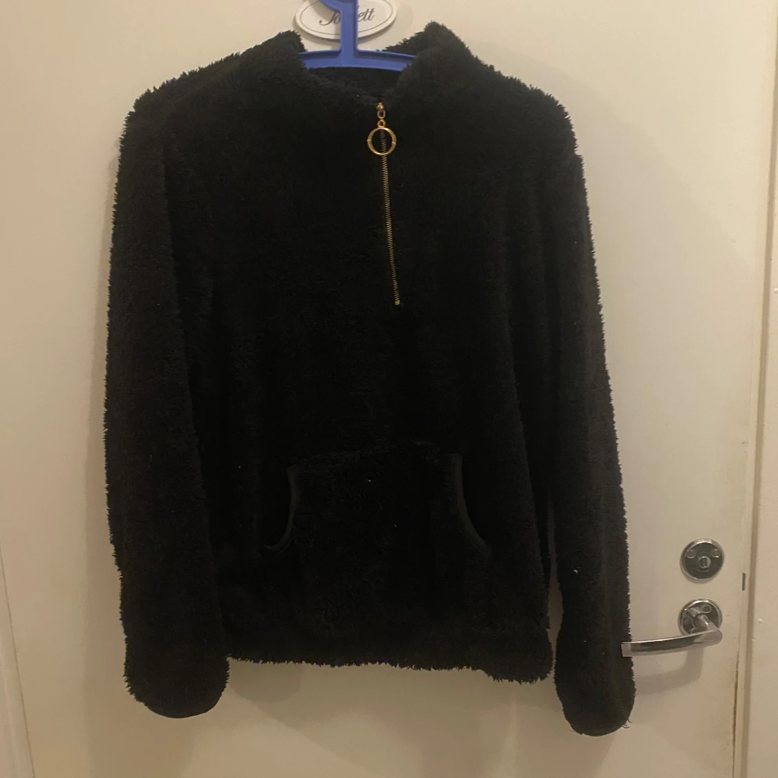 Mysig svart fleece-tröja från Shein med lång ärm och half zip i guld med rund ring. Tröjan har en stor känguruficka framtill och är fluffig och varm, perfekt för kyliga dagar. Passar dig som gillar chill och comfy stil.